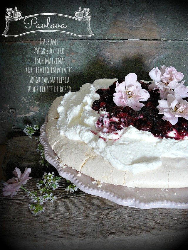 Sono andata a cercare more, mirtilli e lamponi fin nel sottobosco e ci sono riuscita. Pochi passaggi ed una torta buona, fresca e scenografica è stata presentata sulla mia tavola. Più caramellosa non poteva essere: soffice meringa ricoperta di panna e frutti di bosco.