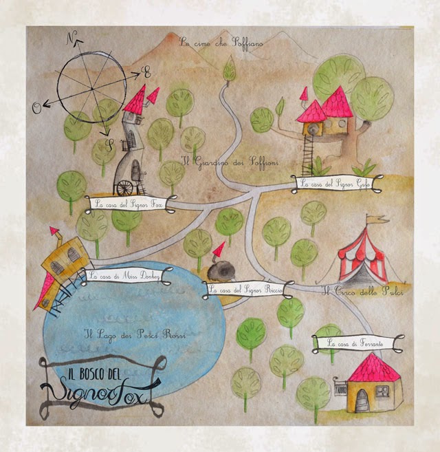 Ora, a distanza di molti anni (e non voglio neppure provare a contarli) mi sono divertita a disegnare la mappa del Bosco del Signor Fox & Co.